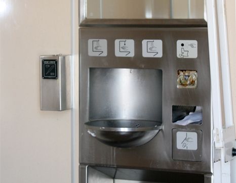 Alle vitale tekniske dele, som regulering af varme, vand, afløb og ventilation sider på bagsiden af væggene og kan kun tilgås fra et servicerum. Dette er også en foranstaltning der begrænser muligheden for hærværk på toilettet.